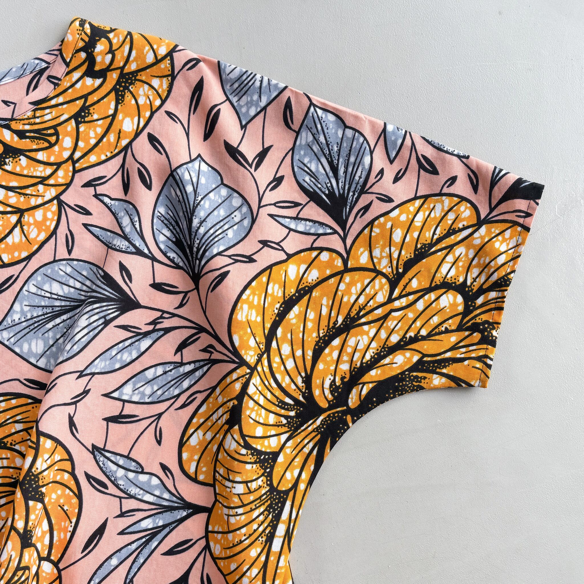 アフリカンワックスプリントの生地を使ったTシャツです。