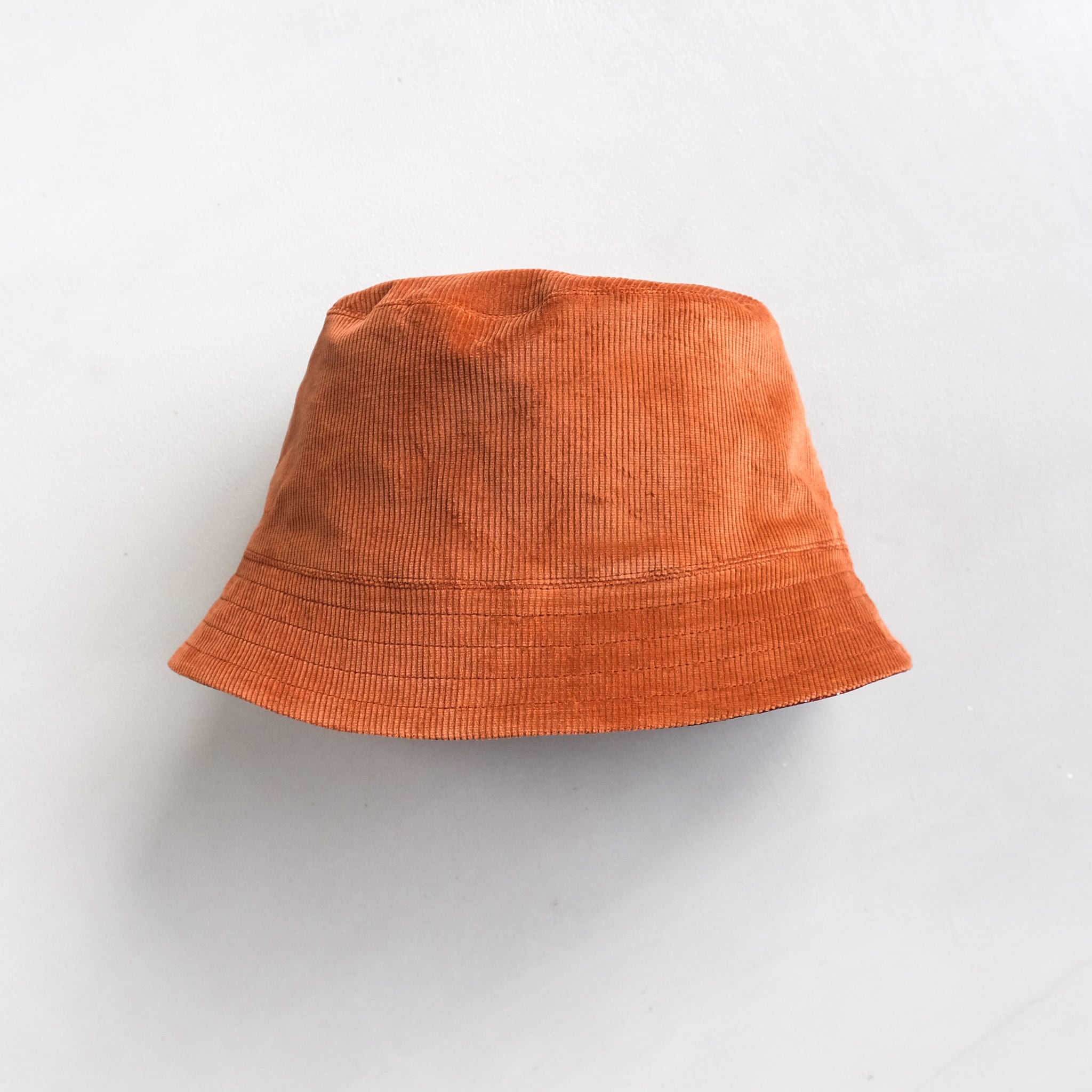 コーデュロイ生地と南アフリカのシュエシュエ生地を使ったリバーシブルタイプのバケットハットです。カジュアルな中にも上品さを感じさせるデザインが特徴で、ブリックカラーが秋冬のコーディネートにぴったりです。コーデュロイ生地ならではの風合いと暖かさがあり、着用することで個性を引き立ててくれます。